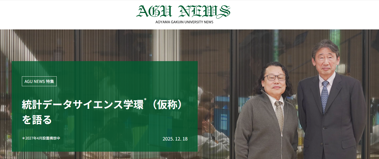 【AGU NEWS】151号<特集:統計データサイエンス学環(仮称)を語る>公開
