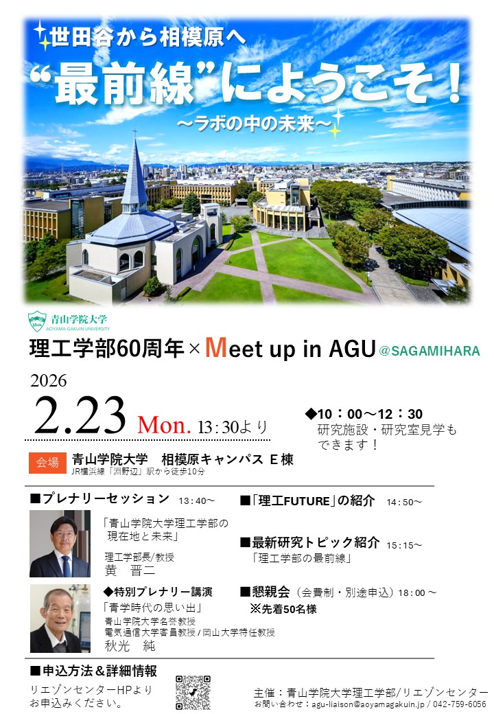 2026年2月23日(月)理工学部60周年×Meet up in AGU @SAGAMIHARAを開催します
