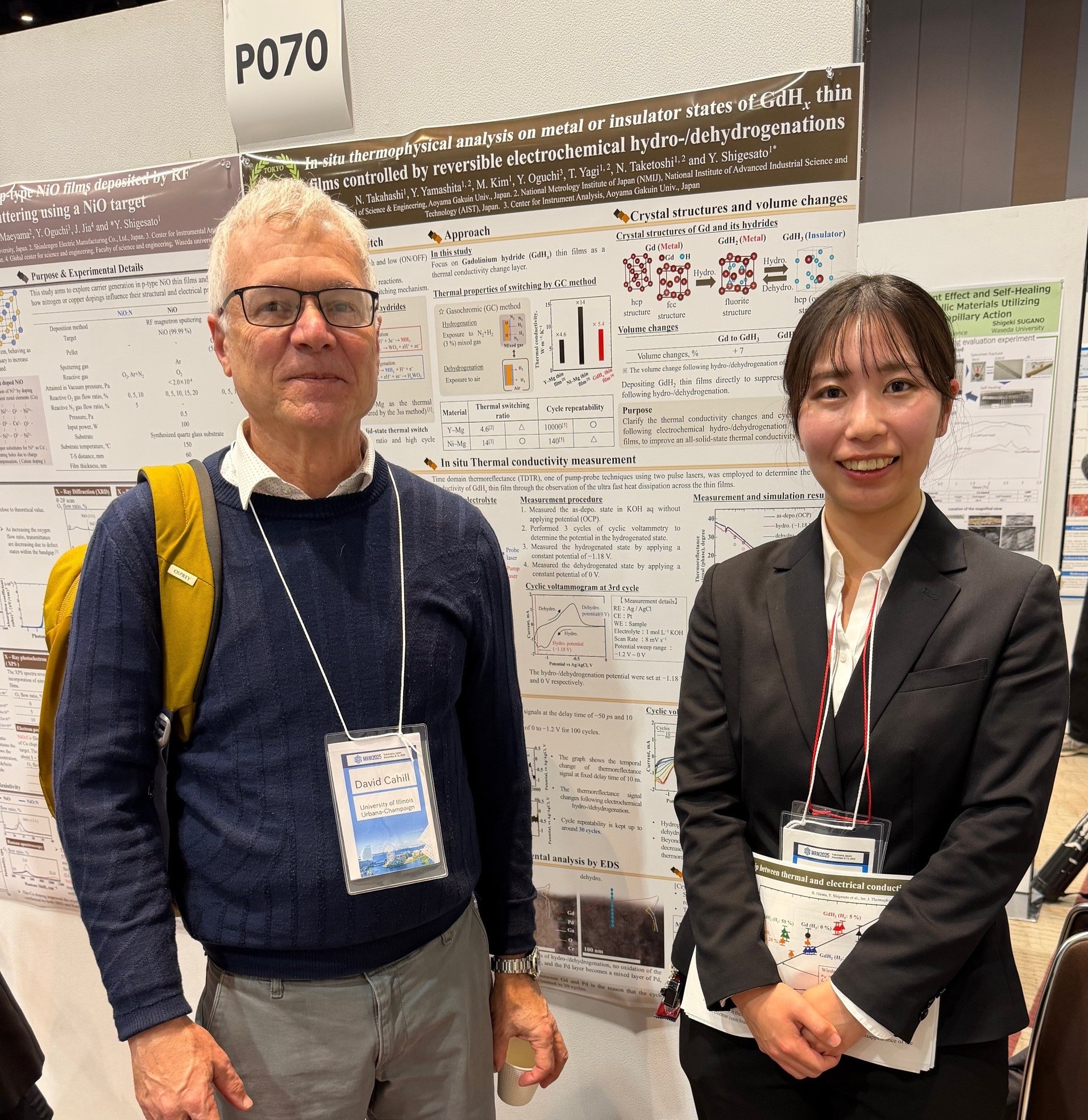 “In-situ thermophysical analysis on metal or insulator states of GdHx thin films controlled by reversible electrochemical hydro-/dehydrogenations”, Materials Research Meeting 2025 (MRM2025), December 8-13, 2025, Yokohama, Japan.