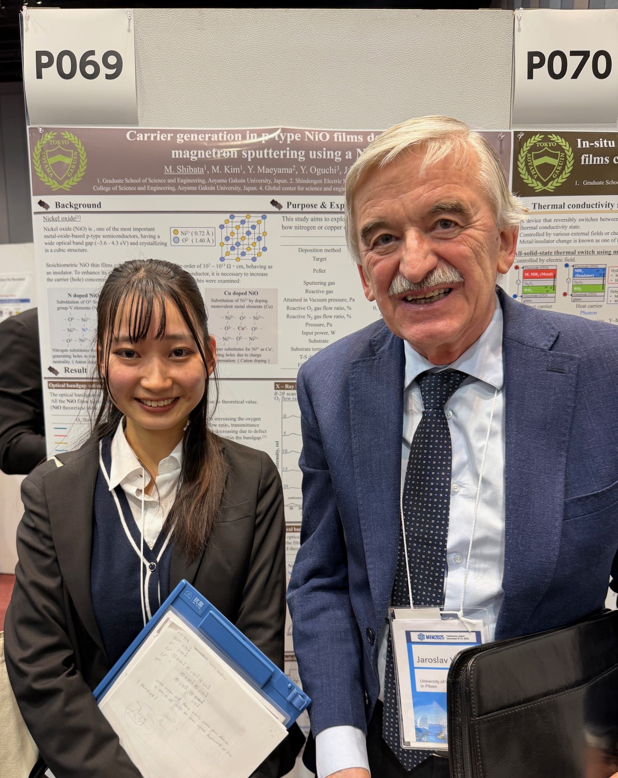 “Carrier generation in p-type NiO films deposited by RF magnetron sputtering using a NiO target”, Materials Research Meeting 2025 (MRM2025), December 8-13, 2025, Yokohama, Japan.