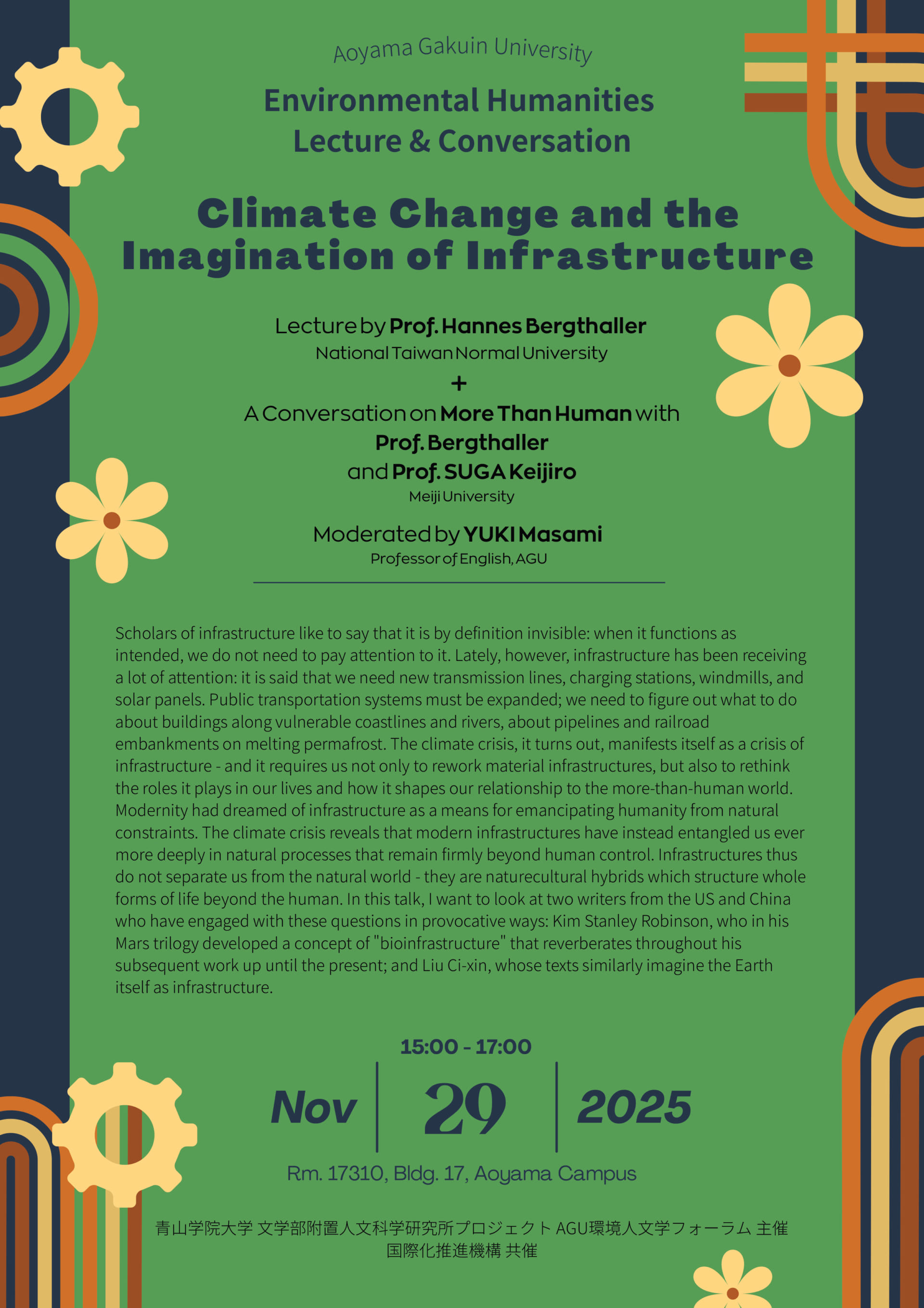 2025年11月29日(土)、青山キャンパス 17号館3階17310教室にて「Environmental Humanities Lecture & Conversation」を開催します。