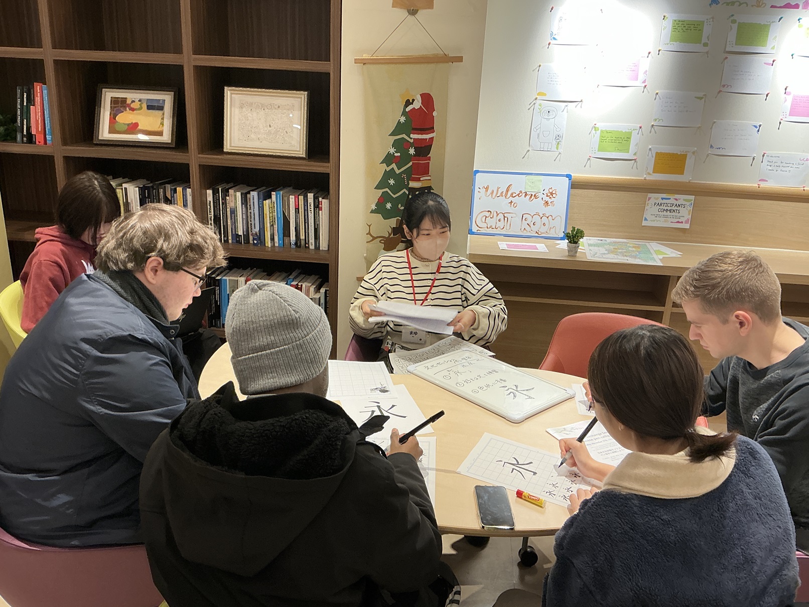 2025年11月27日(木)、青山キャンパスのチャットルームにて、留学生を対象に日本語チャットセッションの一環として日本文化セッションを実施いたしました。前期に実施して好評だったペン習字を行いました。