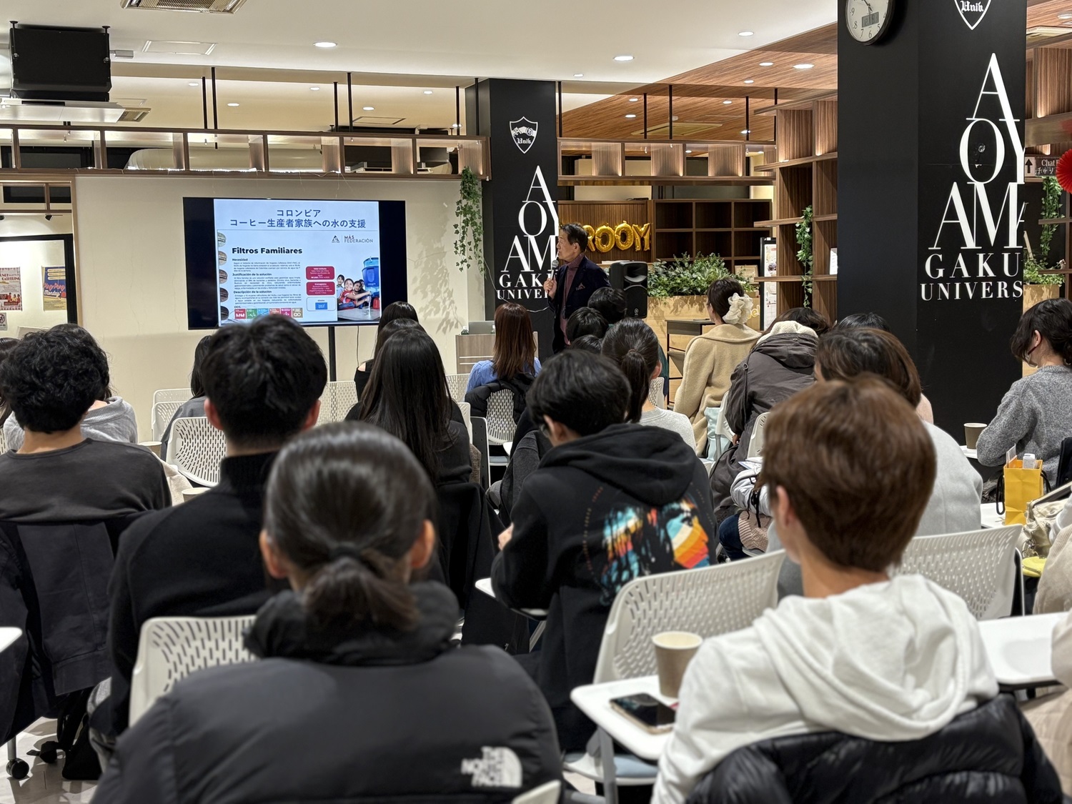 Approximately 47 people participated in the coffee workshop, including international students, AGU regular students, and faculty/staff. Feedback from participating students included comments such as, “I learned that coffee is significantly related to human rights issues,” and “This seminar sparked my interest in South America,” indicating the event served as a catalyst for broadening their global perspective.
