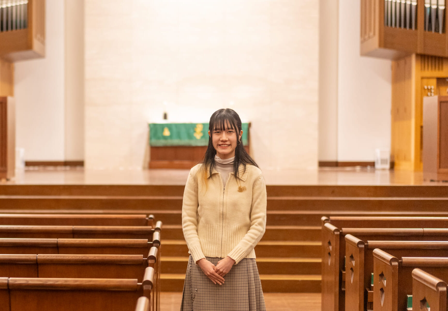 鈴木 友莉寿 経営学科礼拝を通して道徳心や人間性を学び、礼拝を支える聖歌隊のリーダーとして活動に邁進