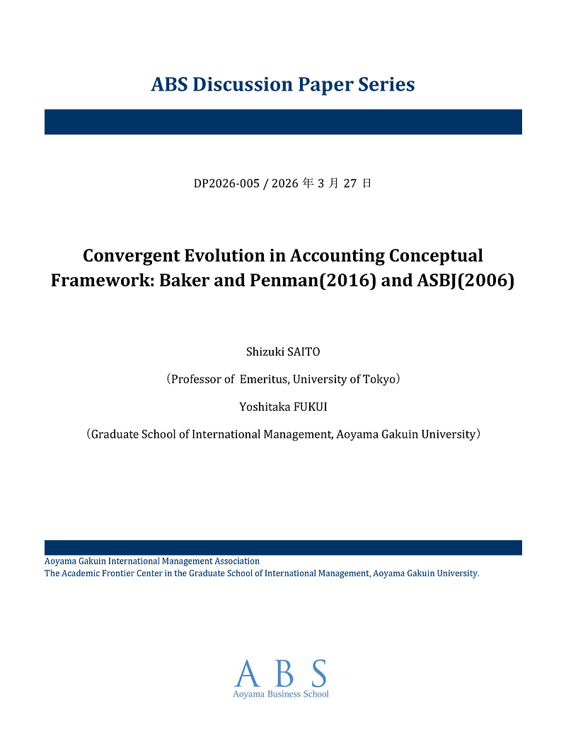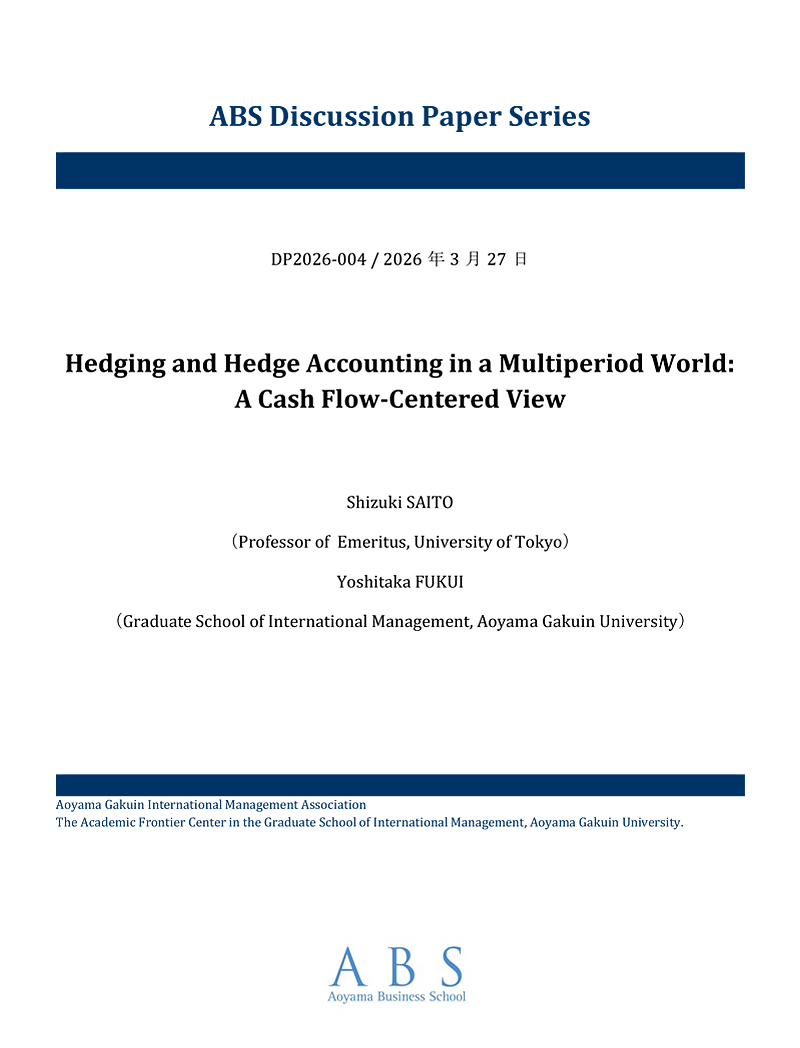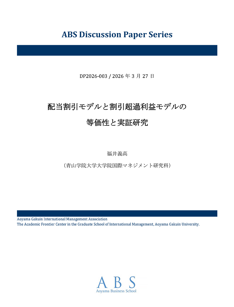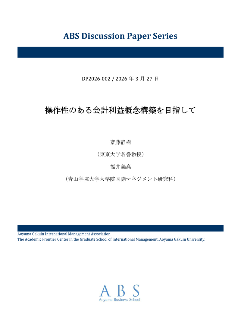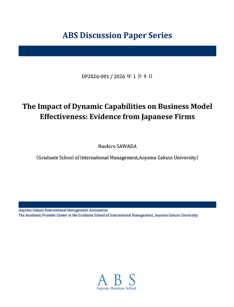 青山学院大学大学院国際マネジメント研究科、国際マネジメント学会および国際マネジメント学術フロンティアセンターでは、関係する研究者の査読誌等に公刊される前の研究成果を速やかに公開することを目的として、ディスカッションペーパー・シリーズを刊行しています。