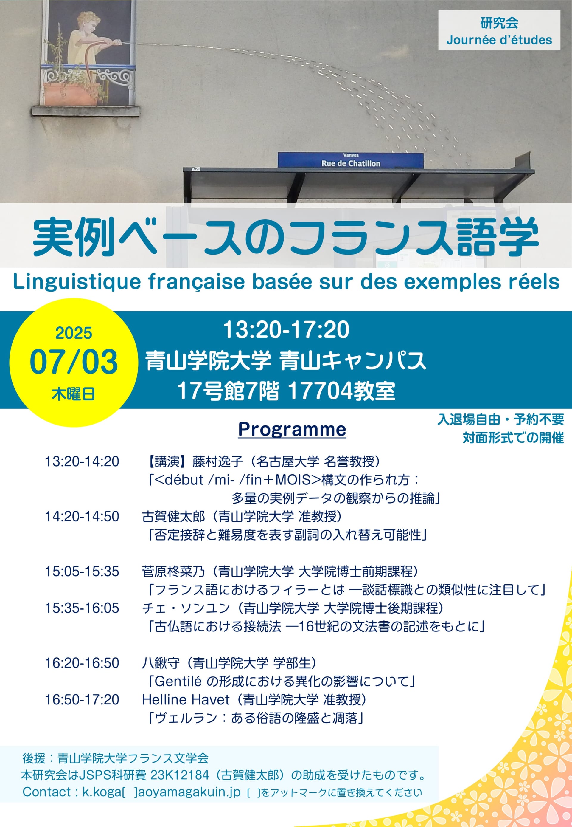 2025.6.21【フランス文学科】研究会『実例ベースのフランス語学』のお知らせ