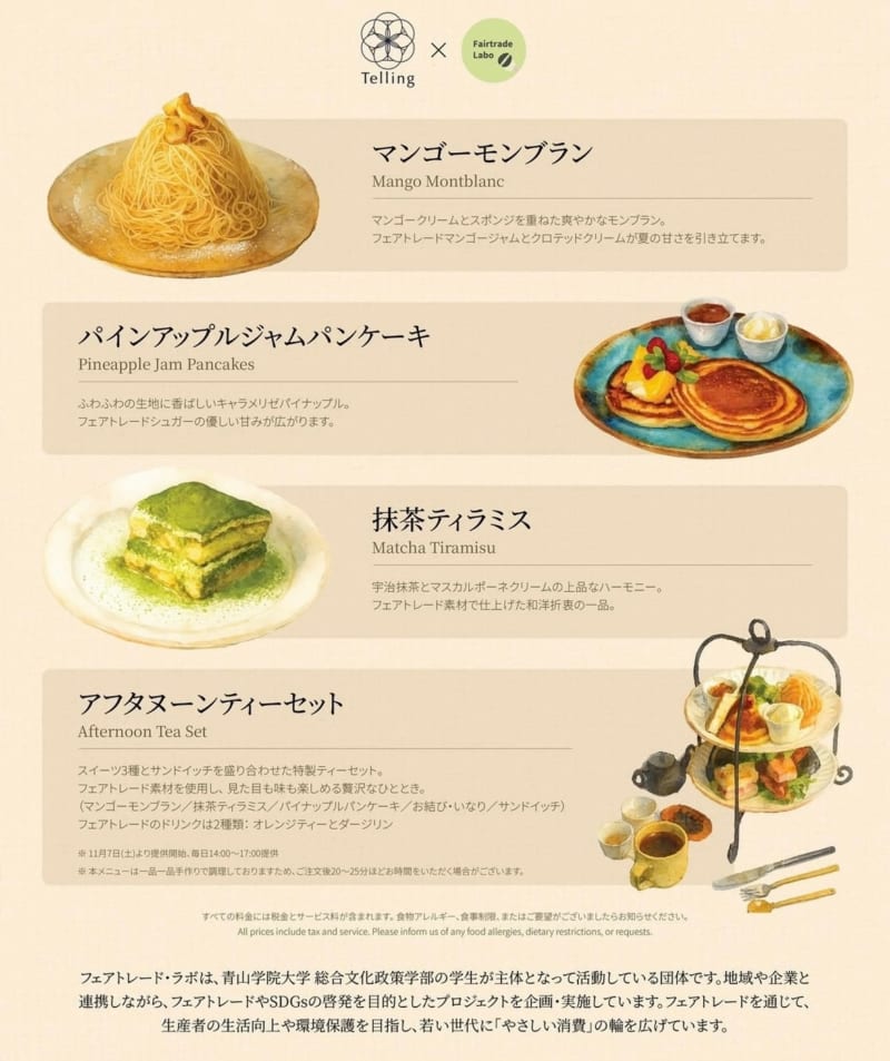 2025.11.21【総合文化政策学部フェアトレード・ラボ】Telling - Cafe & Galleryとのコラボスイーツメニューを期間限定で販売