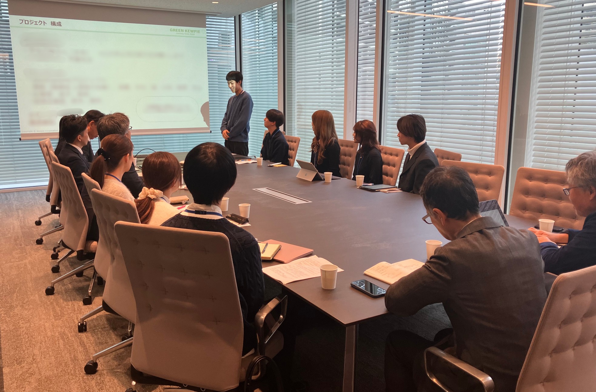 学生はGREEN KEWPIEのブランドやプラントベースフードの意義を学びながら施策を検討し、キユーピーのフィードバックを受けて試行錯誤を重ねました。その結果、「Green Campus」と題した案(経営学部 北村恵太さん率いるチーム)が採用され、実現に向けた準備を進めてきました。