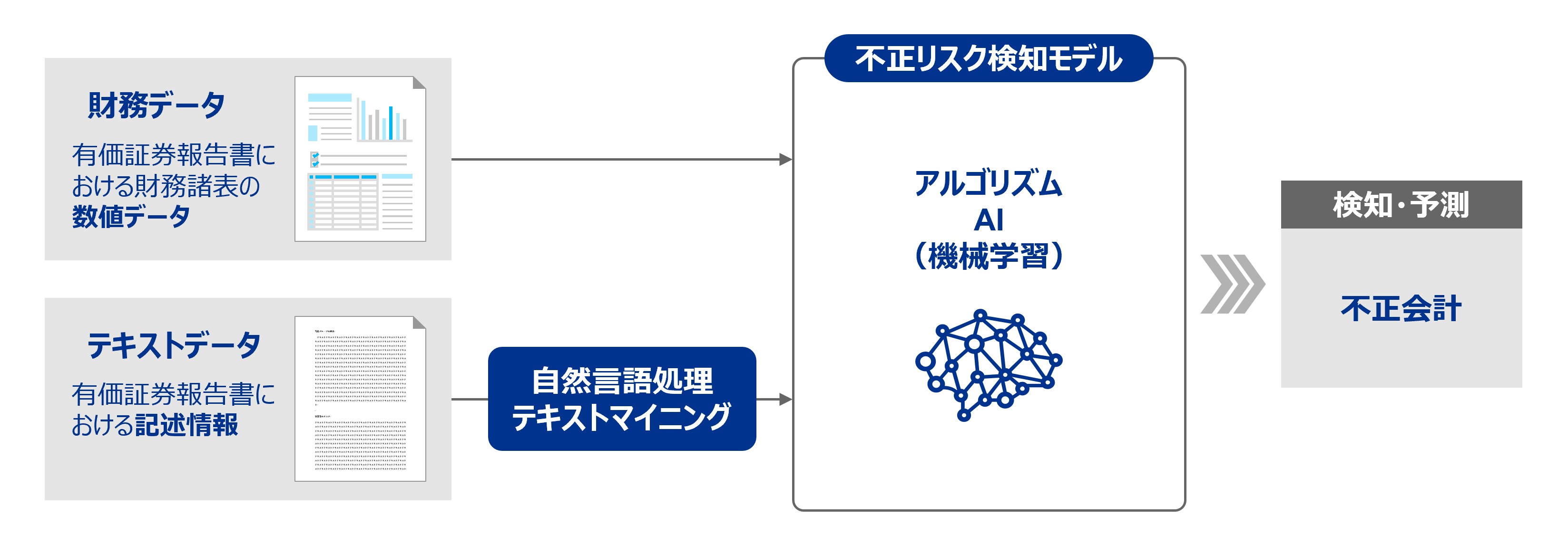 矢澤憲一教授は有限責任 あずさ監査法人と共同で、企業が公表する有価証券報告書の数字(財務データ)と文章(テキストデータ)の両方に注目し、AI(機械学習・自然言語処理)を使って不正会計の予兆を見抜くAIモデルを開発しています。