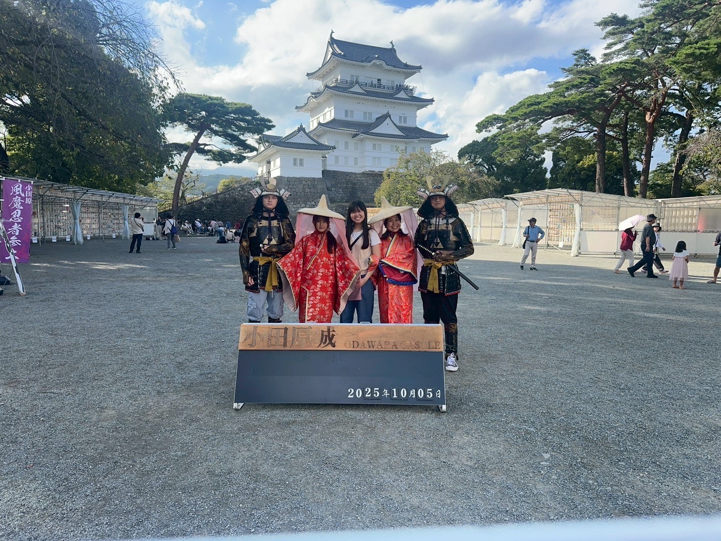2025年10月5日(日)に、地球社会共生学部学生連合の「Japan Tour Project」は小田原へのツアーを実施しました。GSC学部の日本人学生11名が、13人の留学生を小田原城、ミナカ小田原、常盤木門SAMURAI館、報徳二宮神社と小田原駅の近くの足湯に案内しました。当日は秋晴れの中、歴史と文化を感じながら交流を深めることができ、参加者全員が楽しいひとときを過ごしました。