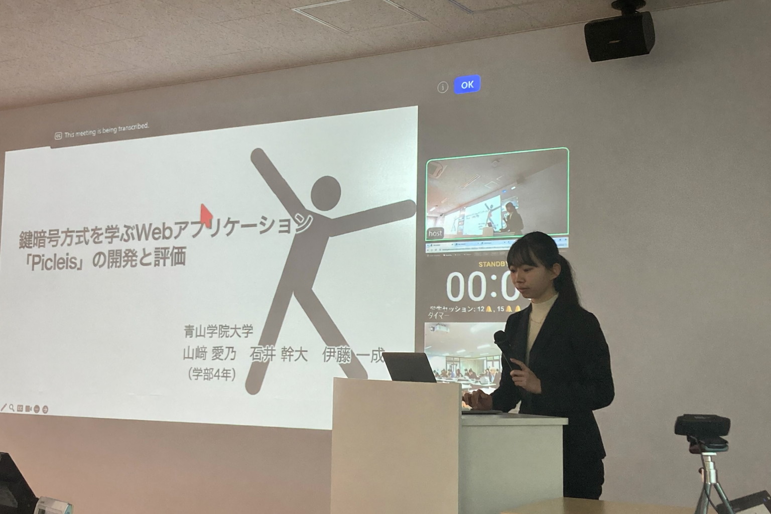 山﨑さんは、今後の情報教育の推進に寄与すると考えられる鍵暗号方式の学習アプリケーションを立案し、開発を軸とした研究を進めています。このような形で高く評価いただき、指導教員としても大変嬉しく思っています。今回の受賞が進歩の動機となり、さらなる進展を楽しみにしています。