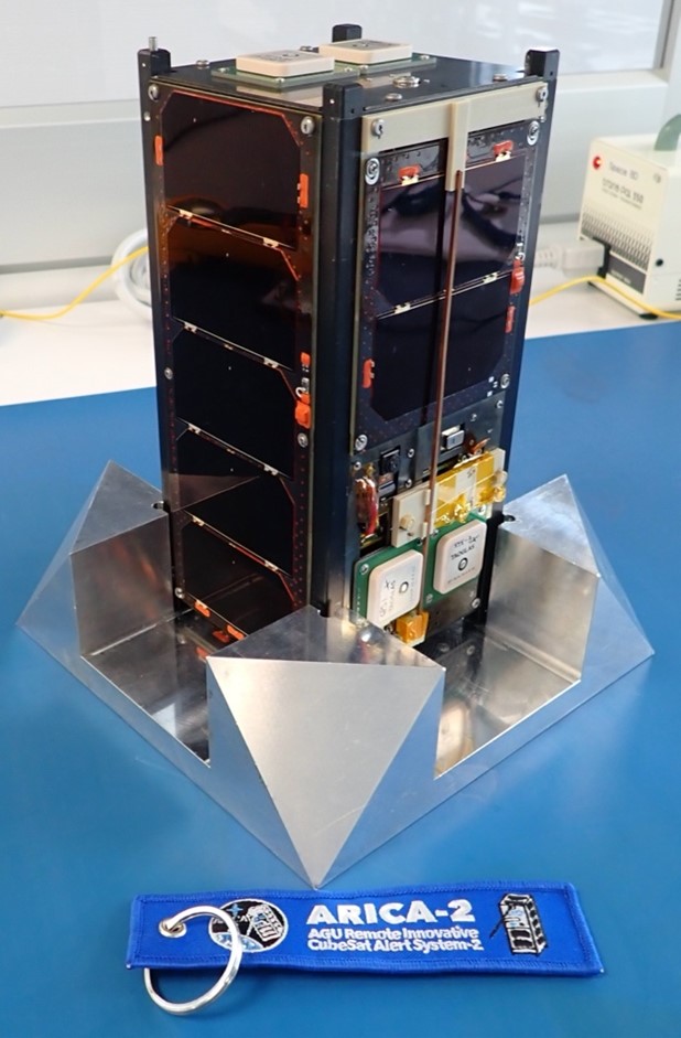 2026年3月10日(火)、坂本研究室(理工学部 物理科学科 坂本貴紀教授、芹野素子助教)で開発した2Uサイズ(20 x 10 x 10cm)のキューブサット(超小型人工衛星)「ARICA-2」(AGU Remote Innovative Cubesat Alert system-2)を、JAXA筑波宇宙センターに引き渡しました。その後、4月8日(水)から12日(日)にかけて、ニュージーランド・オークランド大学での最終作業を無事に終えました。