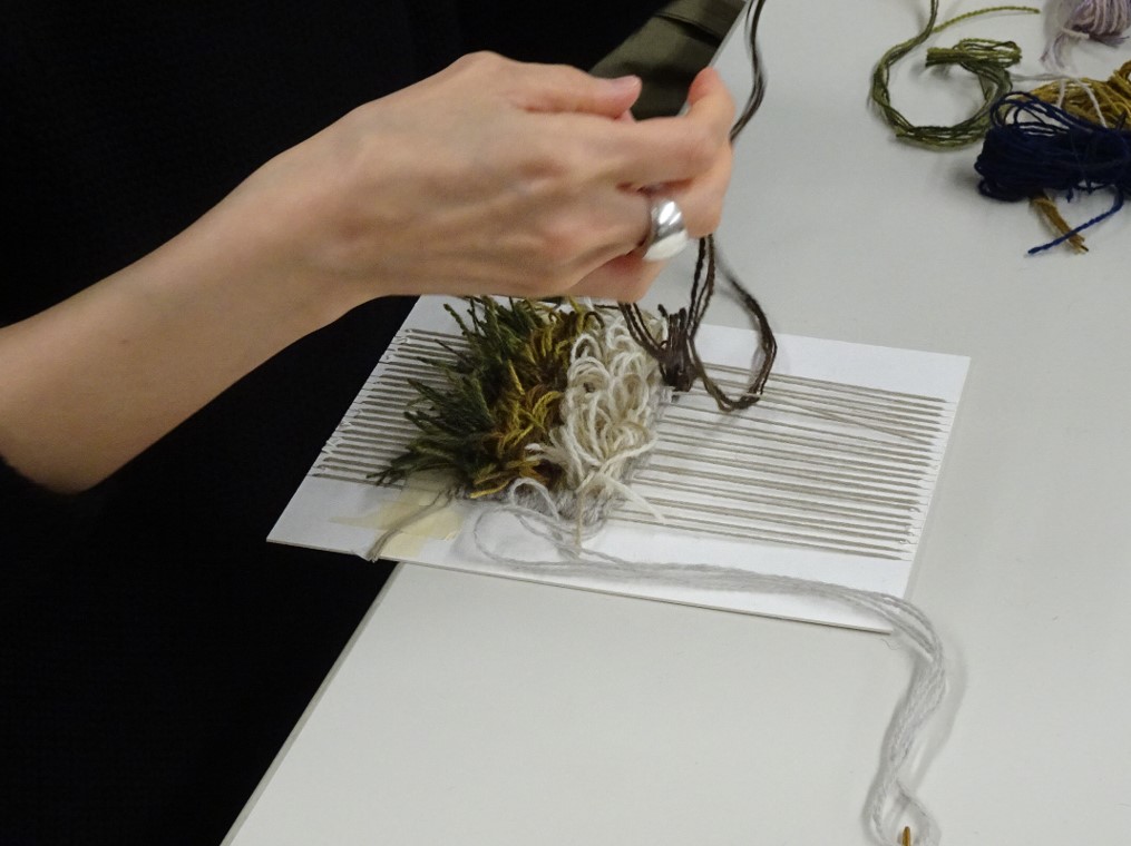 ②ノッティング織の技法を学び、立体的な表現効果を体験する