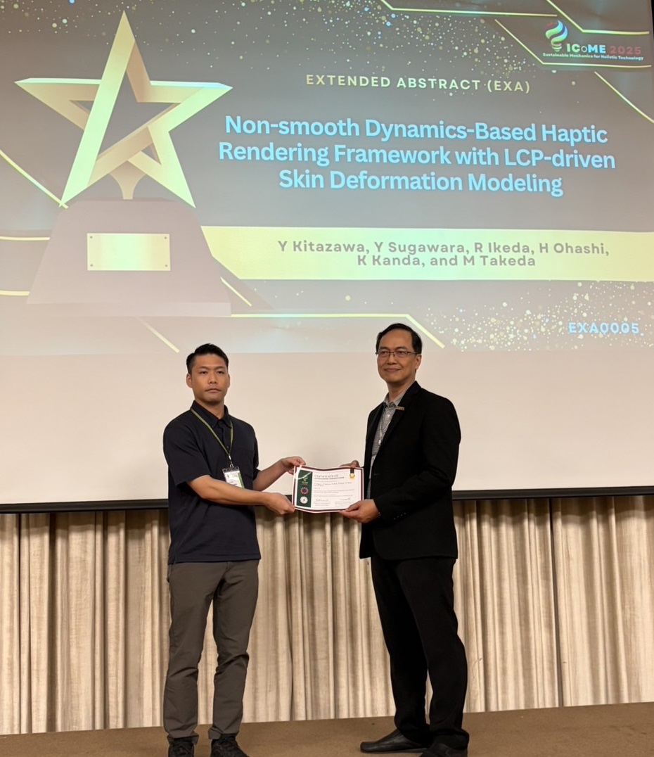 2026.3.10【理工学部】北澤勇気助手(理工学部 機械創造工学科)が「TSME-ICoME 2025」で「OUTSTANDING PRESENTATION」を受賞