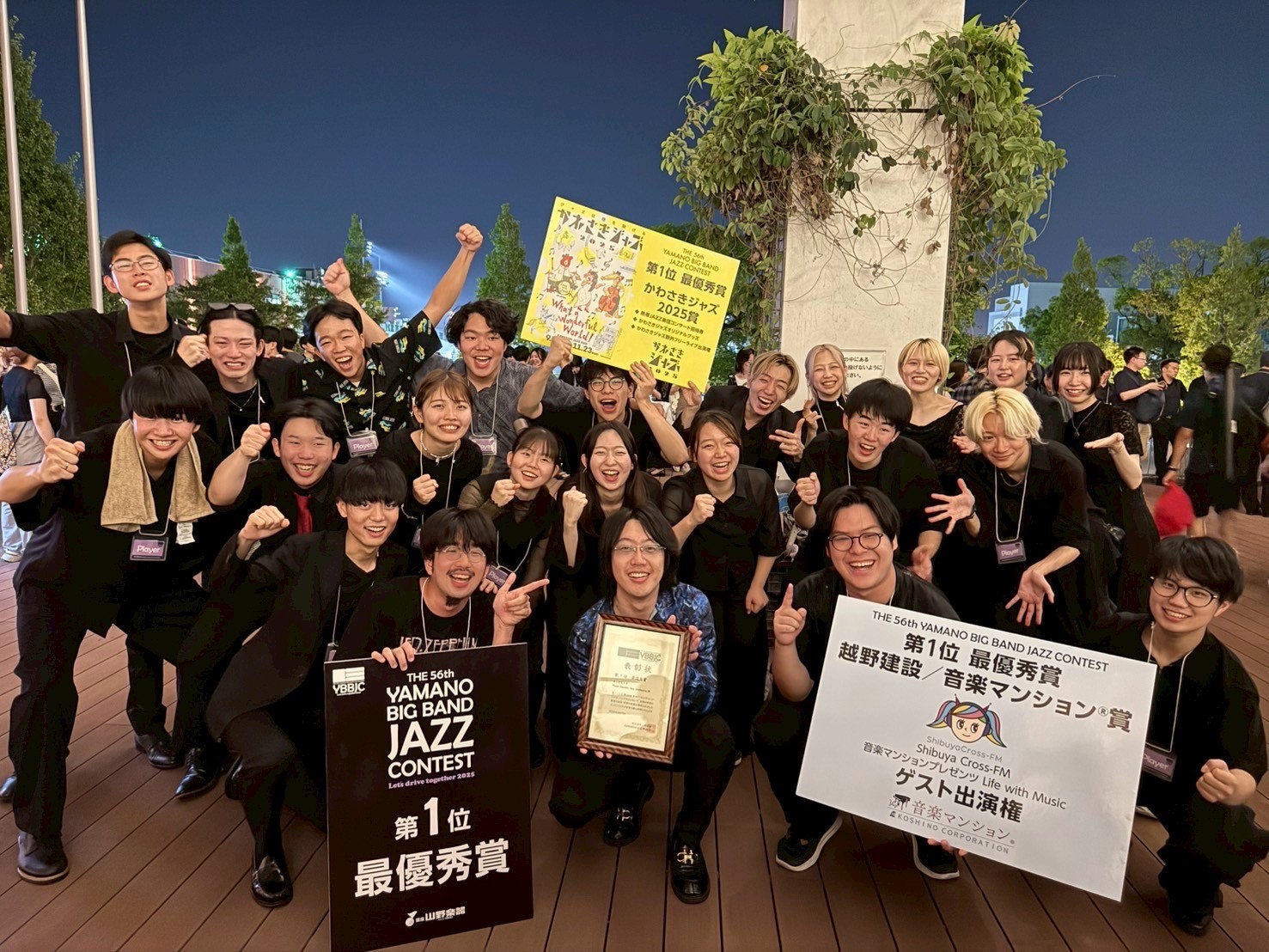 2025年8月16日(土)・17日(日)に、株式会社山野楽器主催「第56回 ヤマノ・ビッグバンド・ジャズ・コンテスト(YBBJC)」がカルッツかわさき(神奈川県川崎市)にて開催され、本学のロイヤルサウンズジャズオーケストラが出場し、昨年に続き第1位となる最優秀賞を受賞し、当団体史上初の2連覇を果たしました。