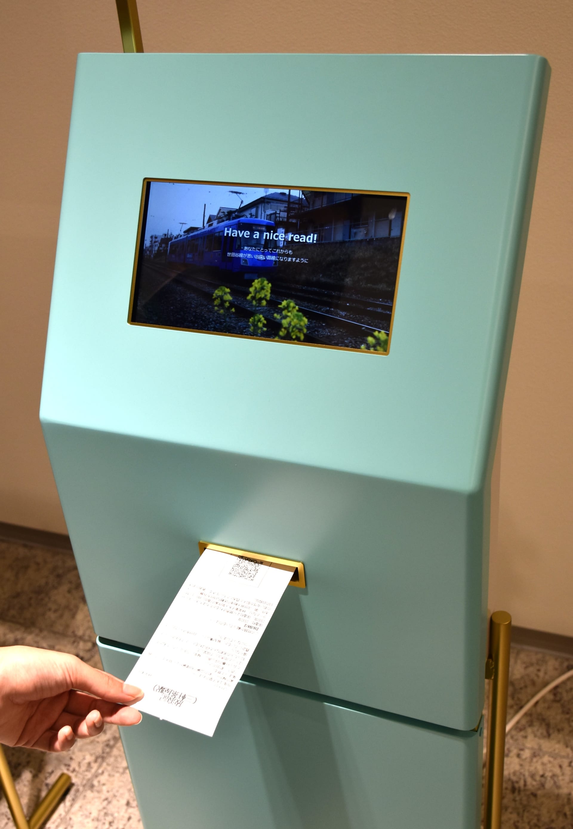 ・「物語の自動販売機」に、複数のショートストーリーを登録して街中や施設内に設置します。ユーザーの操作によりストーリーをランダムに印字して、その場で無料頒布するサービスです。