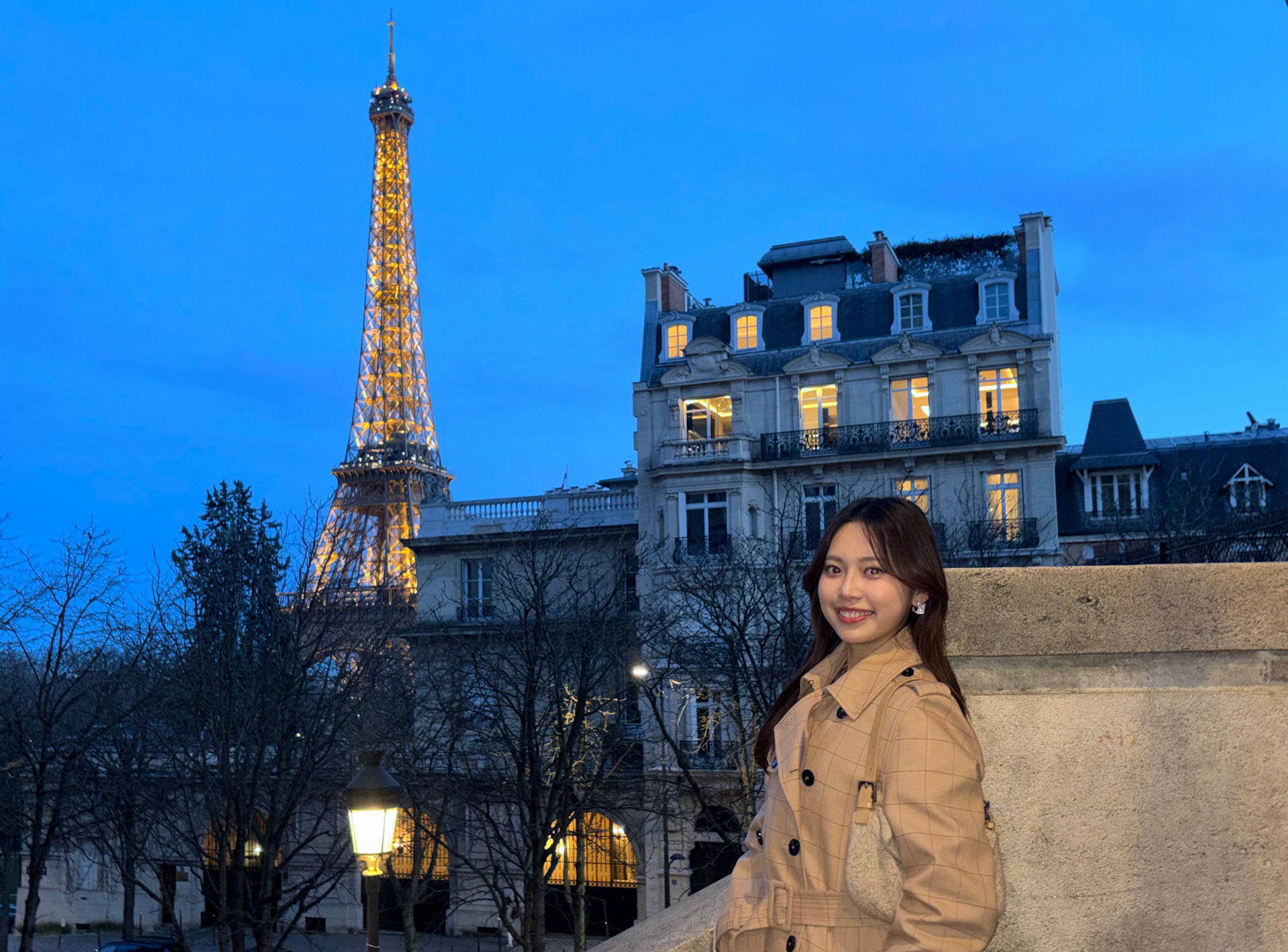 1年次の夏、リヨンカトリック大学での「海外語学・ 文化研修(4週間)」に参加、その知見を糧に、現在、パリのグループEDHに1年間の交換留学中の鵜飼莉子さん。異文化に触れ、言語を学び、街並みに魅了される、そんな日々を過ごしています。現在進行形の学びと挑戦の物語です。