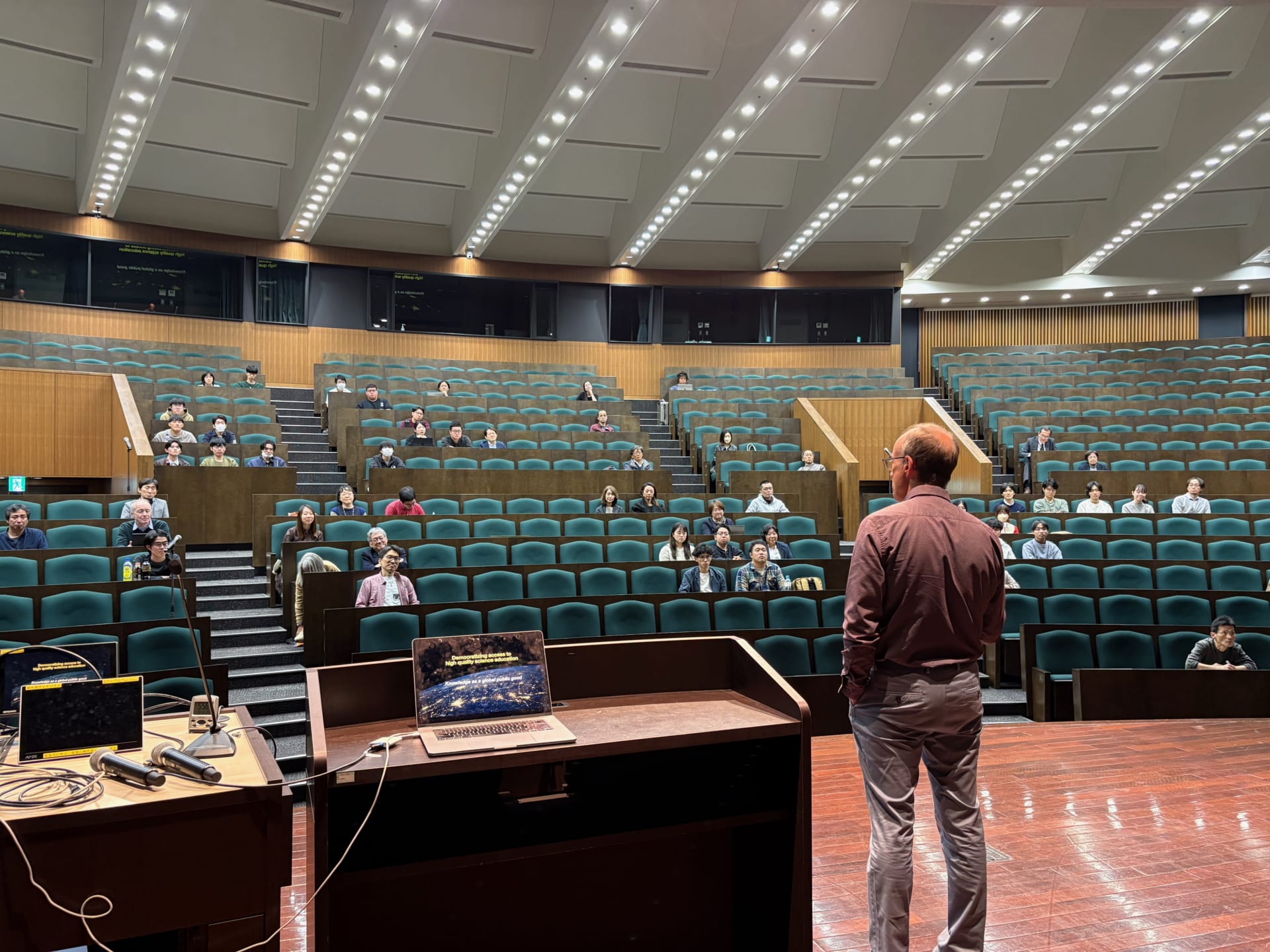 その後、参加された内外の教員や大学院生から多数の質問が寄せられ、ベール博士は一つ一つ丁寧に答えていました。質疑応答の最後には若手研究者に向けたメッセージを述べ、1時間半の講演会が終了しました。なお、講演会終了後、大学院生や若手研究者がベール博士と話をするために長い列をなし、さらに1時間半ほど懇談が続きました。