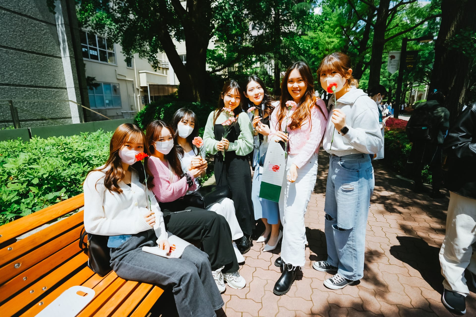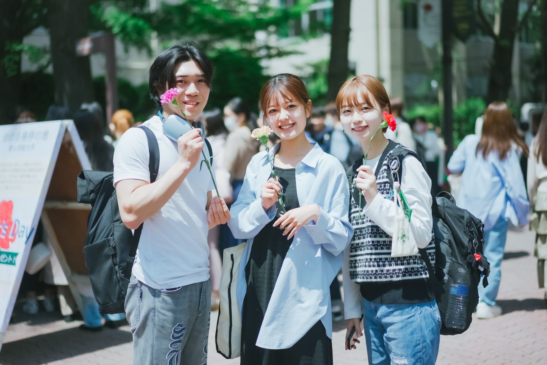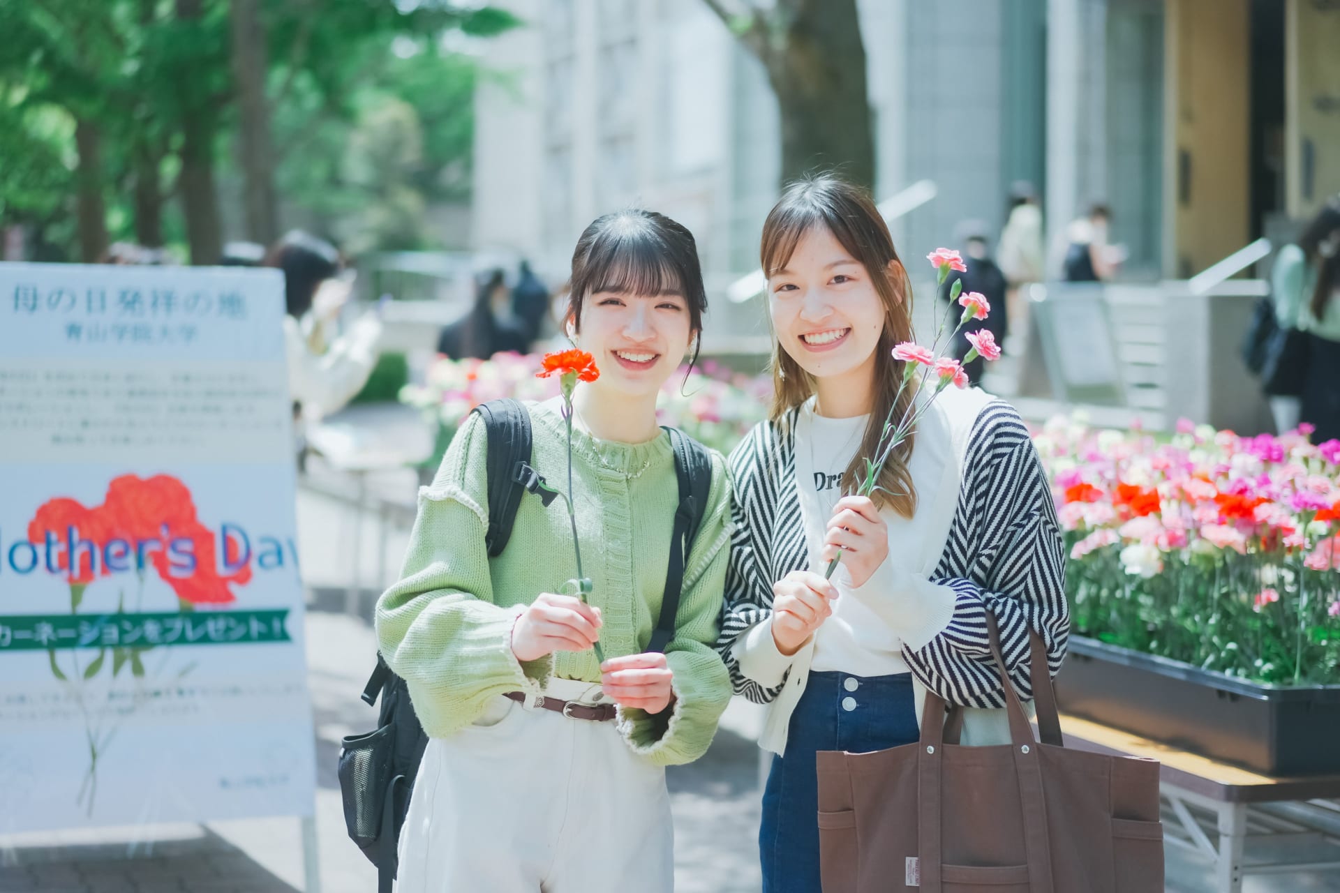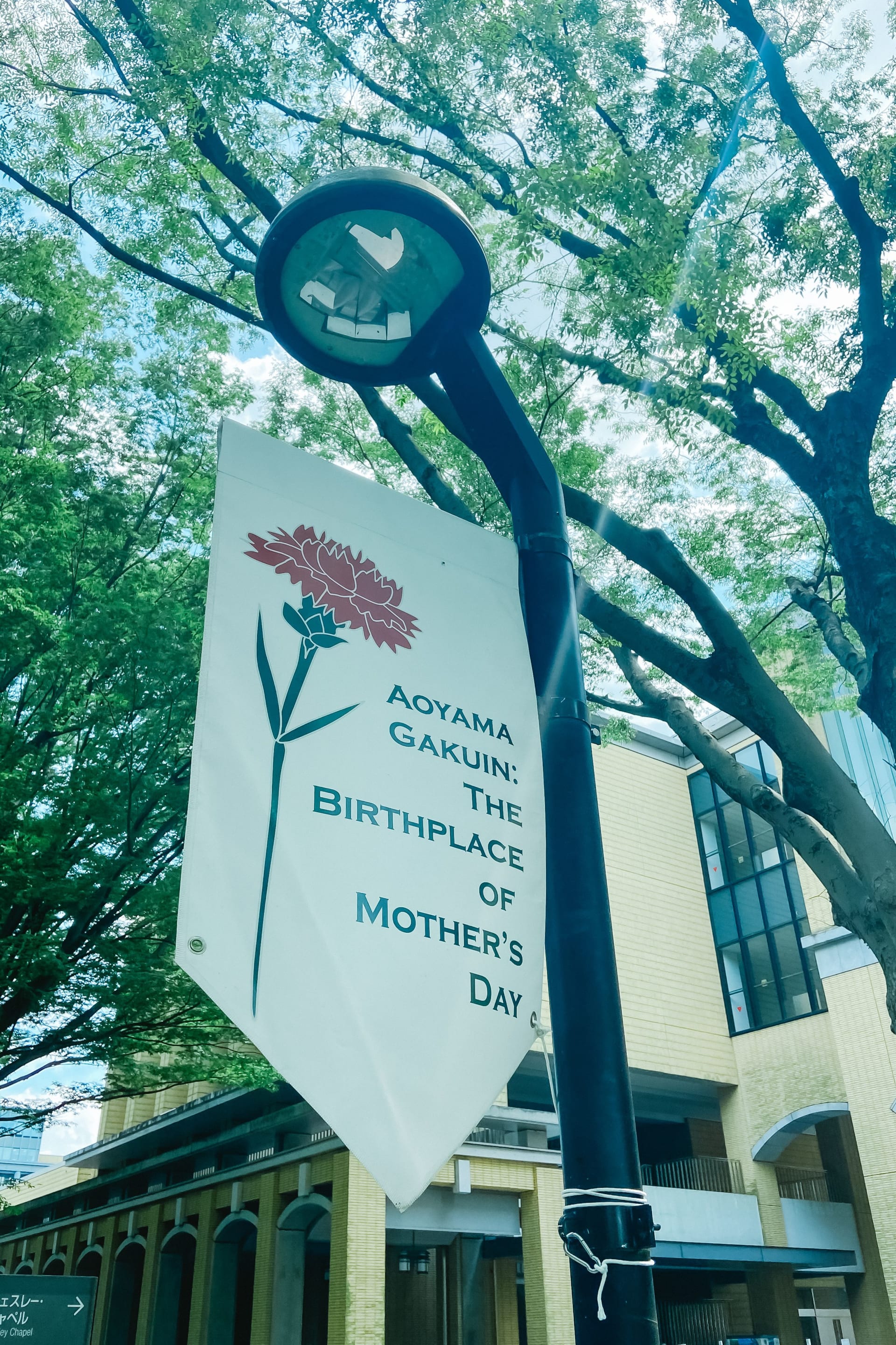 母の日は、戦後、日本にも定着しましたが、その普及には、三人の青山学院にゆかりの深い女性宣教師の努力がありました。青山学院では、初等部などの設置学校で、毎年母の日礼拝が行われ、近年では、街灯フラッグを掲げるなどの行事を実施しています。
