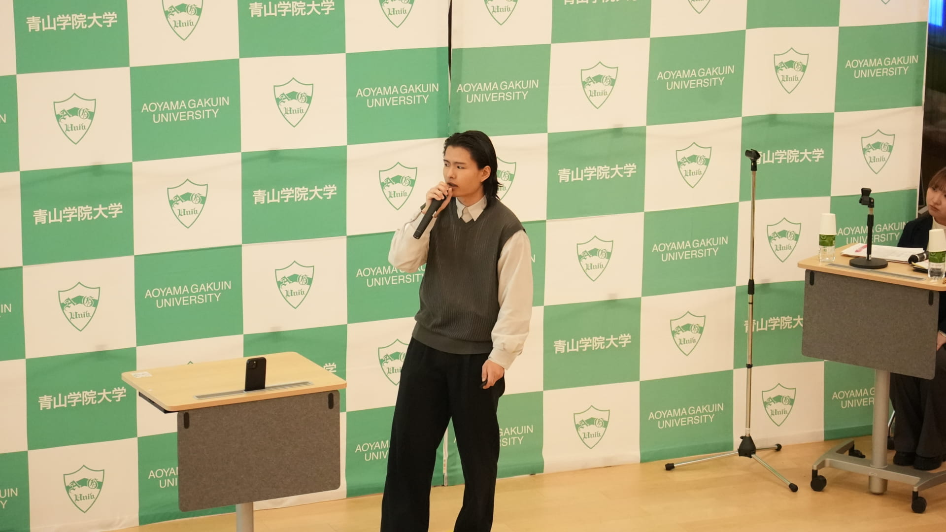 2025年11月29日(土)「青山ビジネスプランコンテスト 最終審査会」を青山学院大学青山キャンパス・マクレイ記念館にて開催いたしました。校友のフリーアナウンサー南真世さん(国際政治経済学部卒)、学部2年生のアナウンス研究会所属 山本望愛さんの司会のもと、アイデア部門の候補56件の中から選ばれた5件の最終審査会を実施しました。