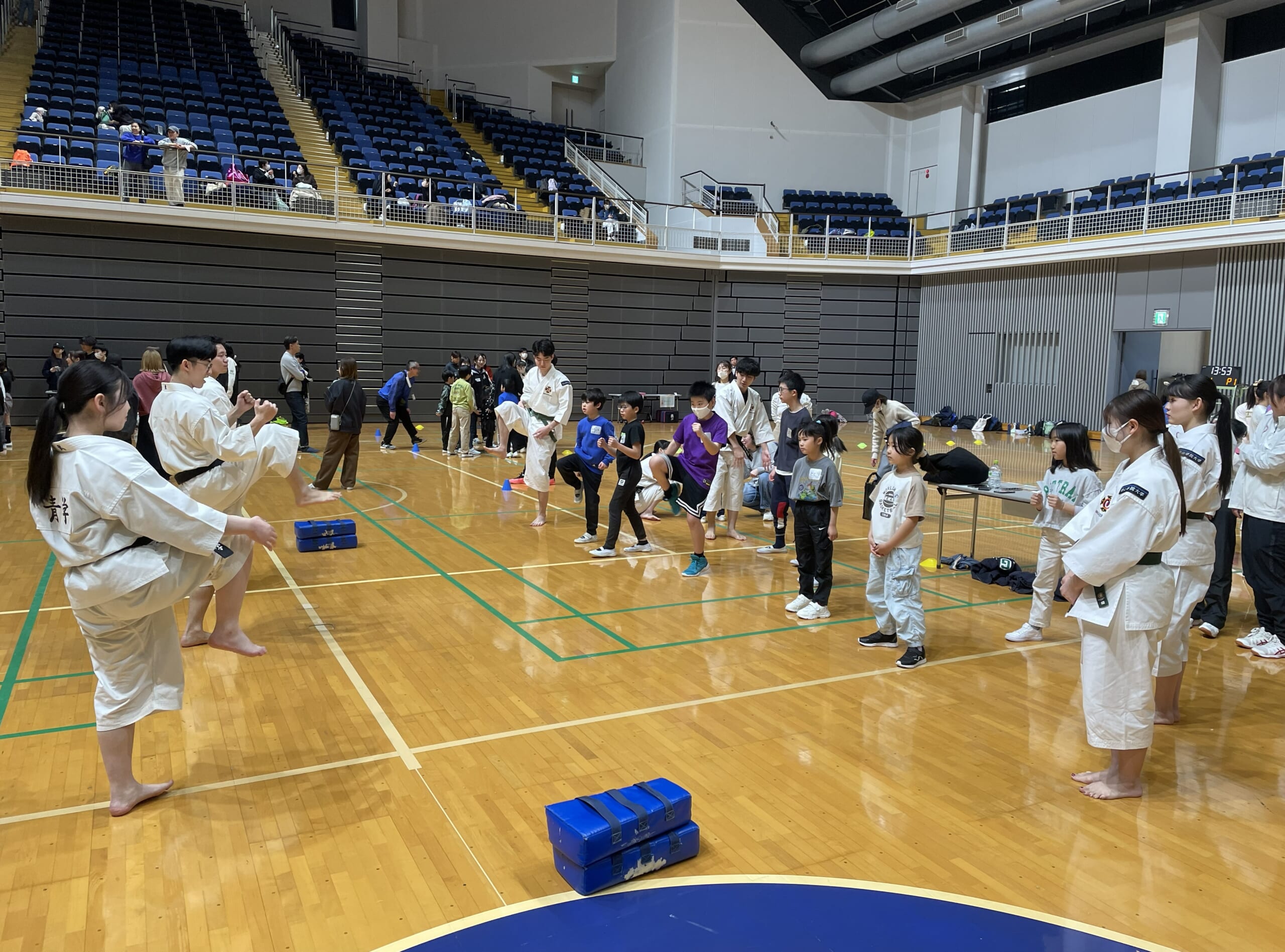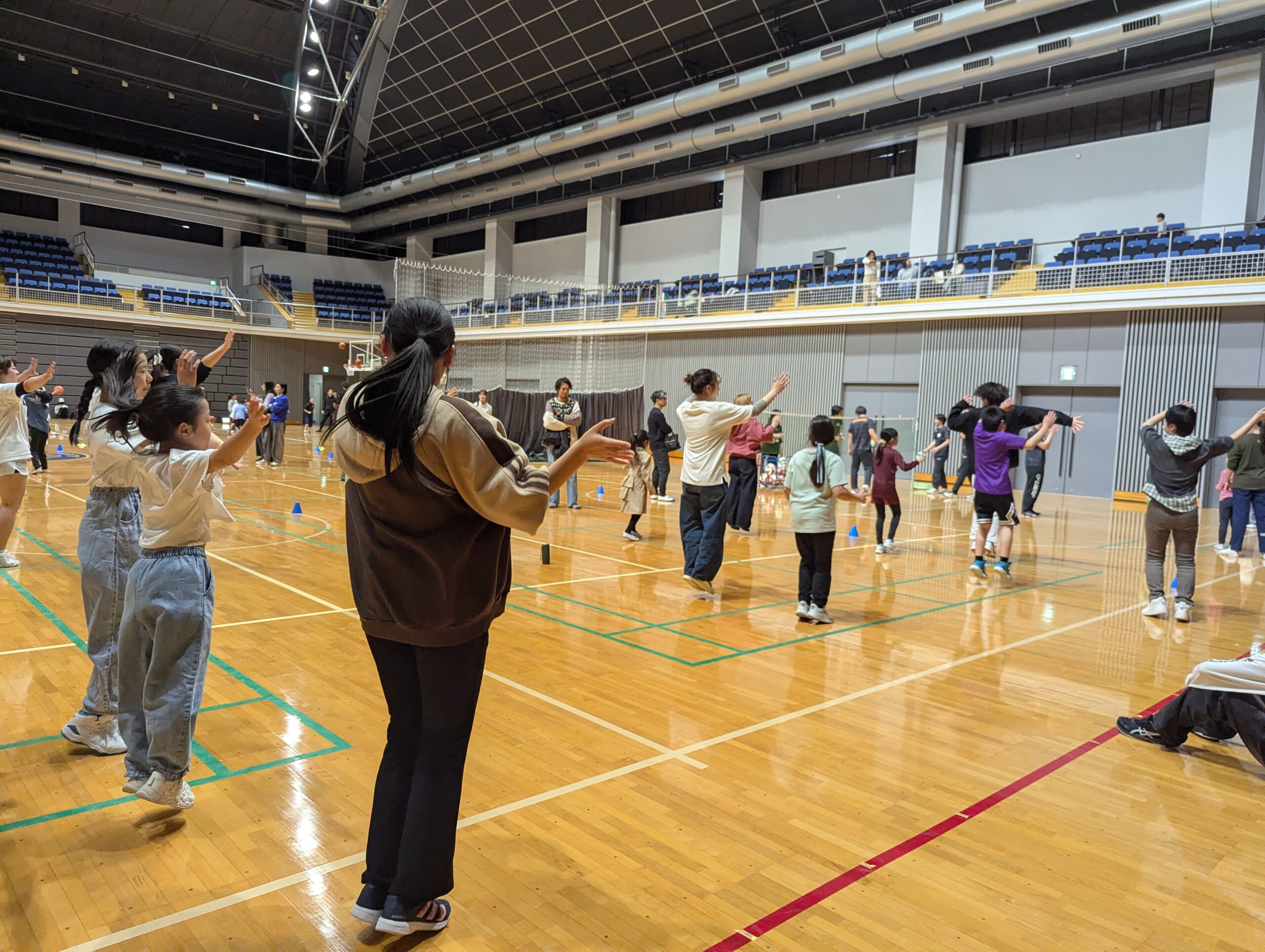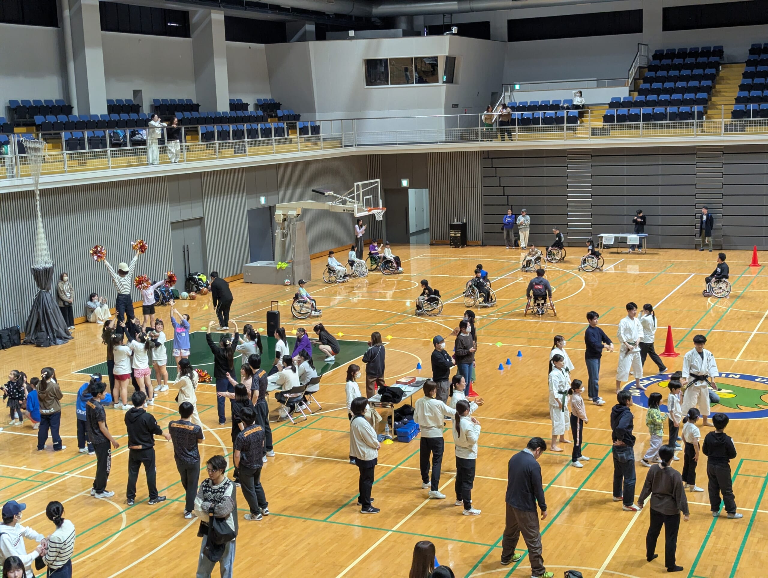 自治体、産業界等と連携し広報活動を行い、当日は、総勢100名を超える小学生、保護者の方々、大学生アスリート、スタッフが参加し、バスケットボール、少林寺拳法、チアリーディング、ダンス、バレーボール、ボッチャ、車いすバスケットボールの7種目を体験できるイベントとなりました。