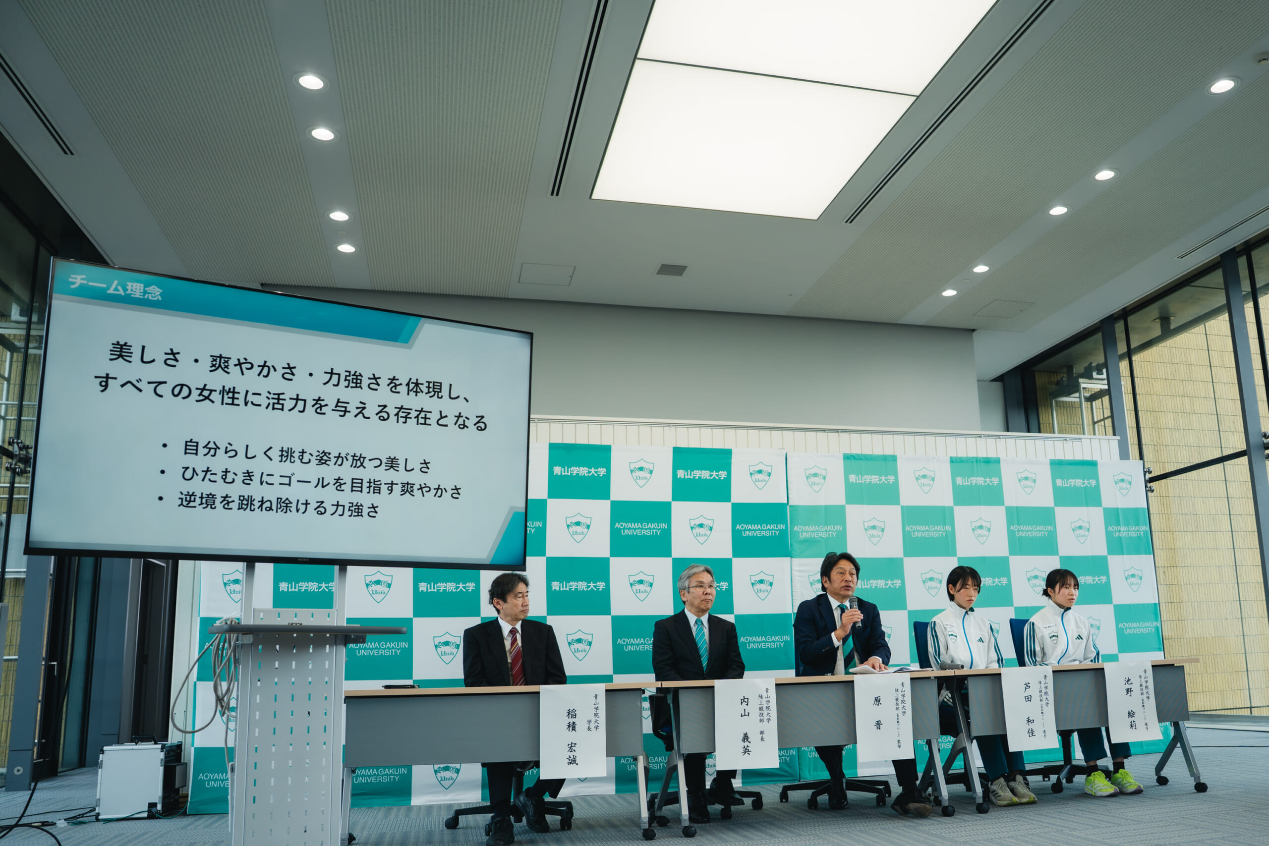 また、「スポーツ活動を通して、大学経営に関与する発想ではなく、女性アスリートの前に立ちはだかる、ライフイベントとの両立や身体的課題、不十分な指導体制など社会課題にも通じるさまざまな障壁を、女子駅伝を通して解決していきたい」と述べ、女性が競技者として、そして一人の人間として長く輝き続けられる場所を創るという強い決意を語りました。